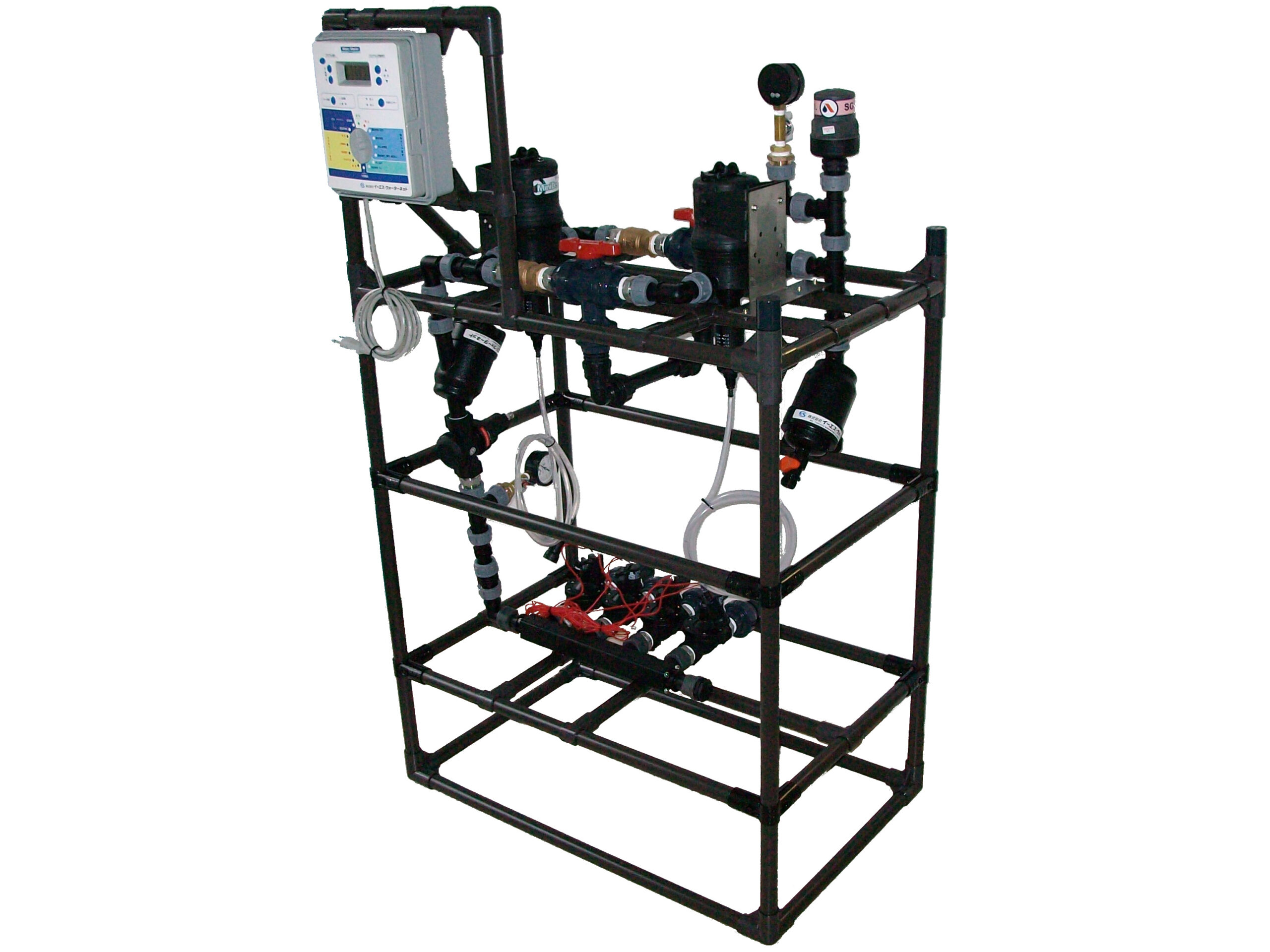 ハウス内などの栽培に必要な、液肥混入器、コントローラー、フィルター、空気弁、電磁弁をセットにしたユニットです。