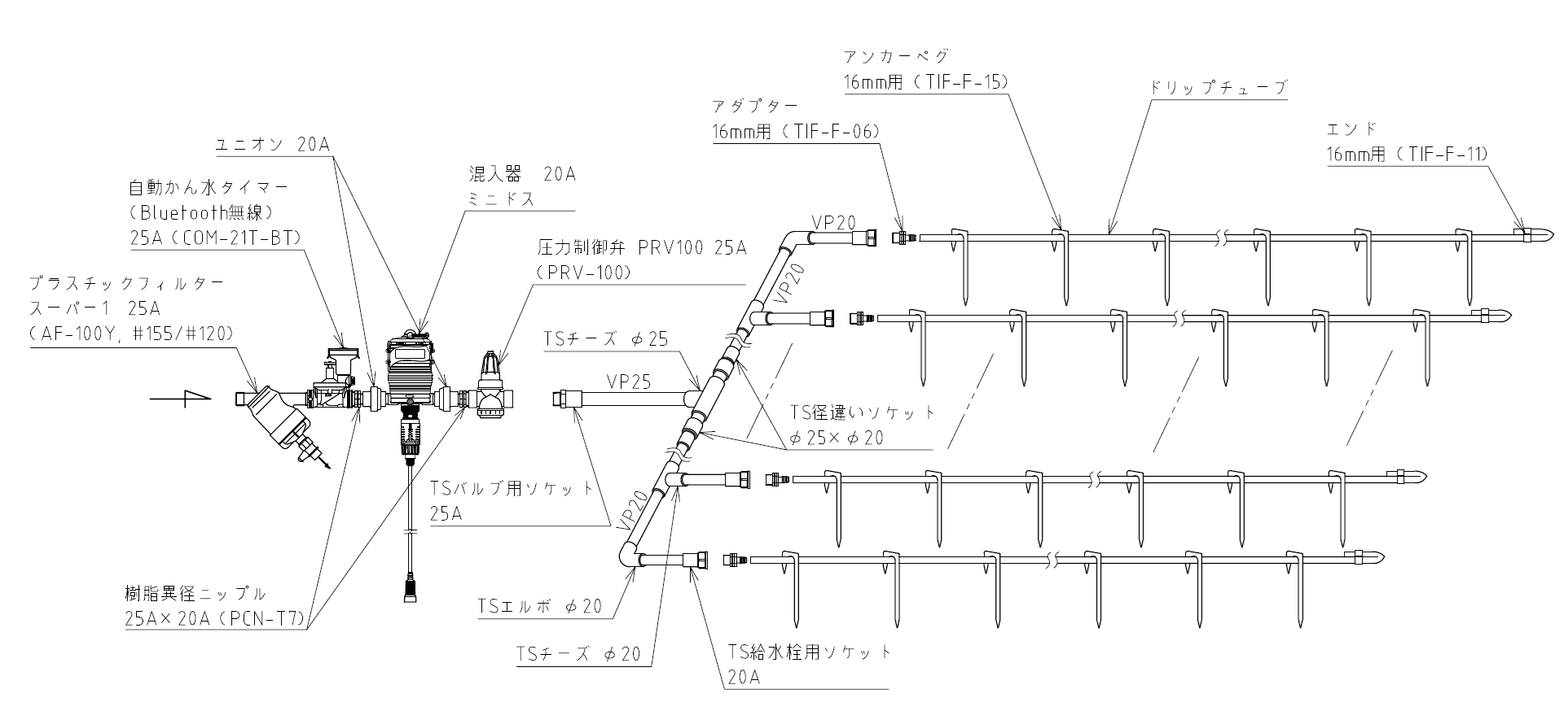 - 露地栽培・花卉・野菜・果樹・施設園芸などの節水かんがい養液土耕栽培に最適。