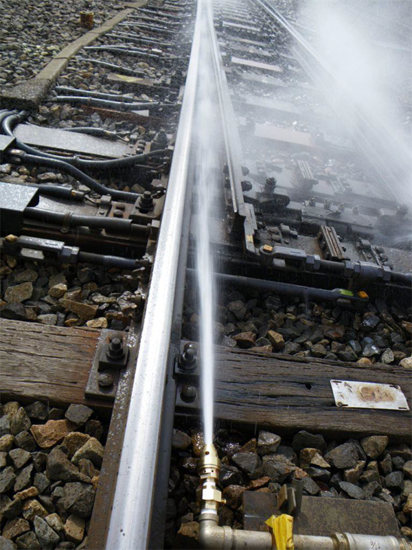 - 広い散水範囲を持ち、スプリンクラー間隔を大きくとれるよう特別設計された軌道消雪用スプリンクラーです。